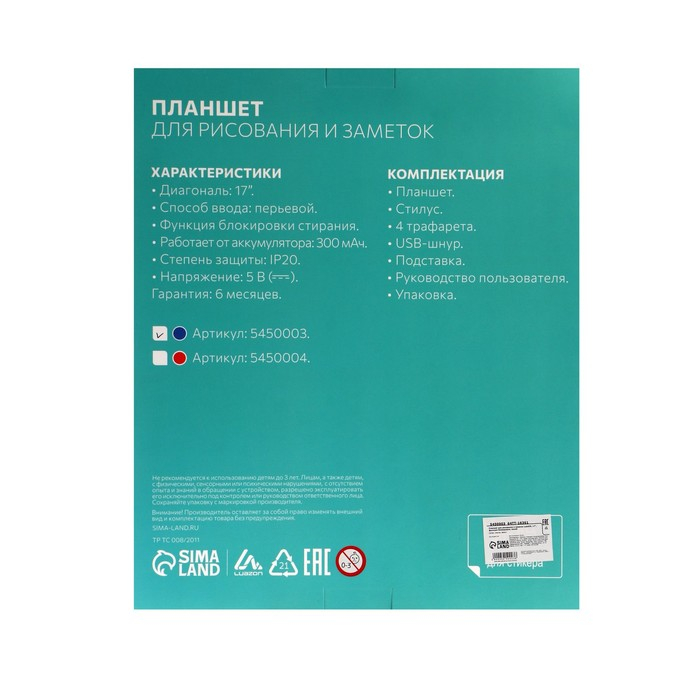 Планшет для рисования и заметок Luazon, 17", функция блокировки, синий