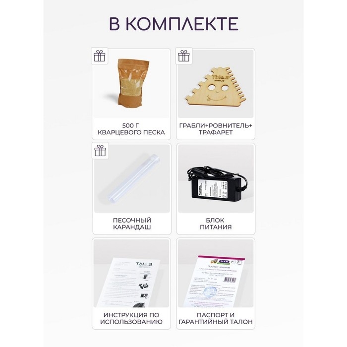 Планшет для рисования песком с цветной подсветкой, 40 × 60 см + гребень и трафарет