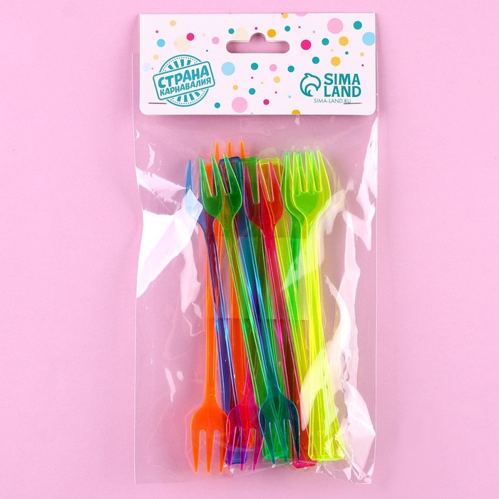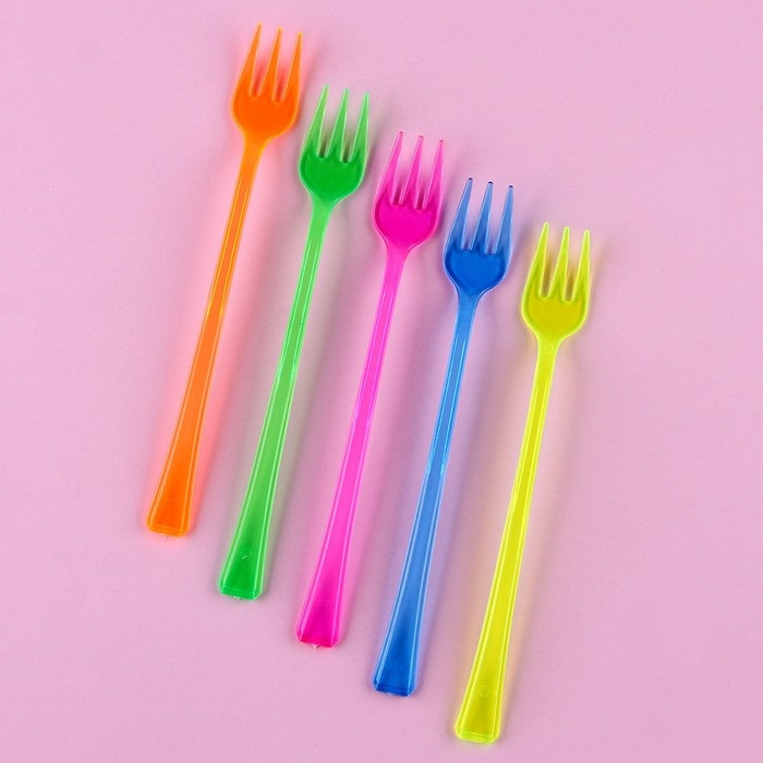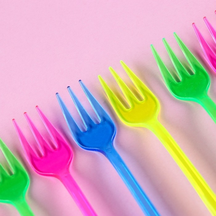 Вилки пластиковые, набор 6 шт., цвета МИКС