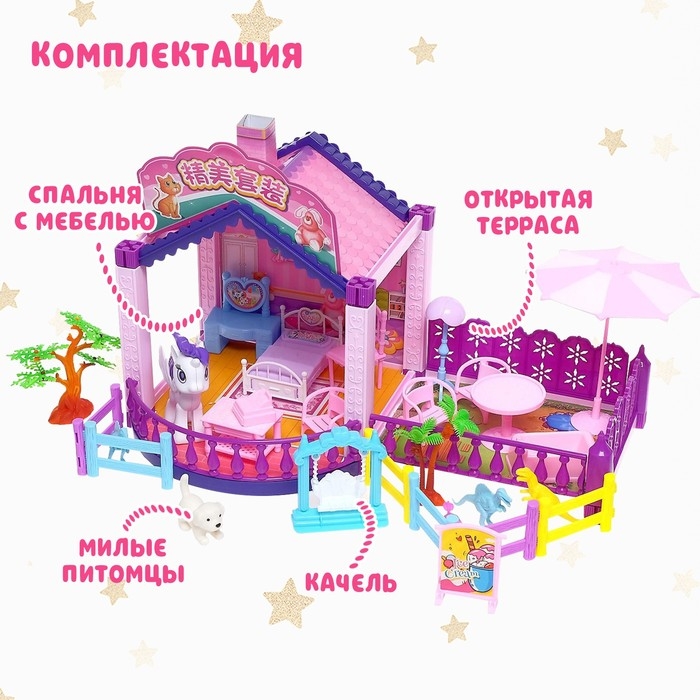 Пластиковый домик для кукол, двухэтажный, с аксессуарами