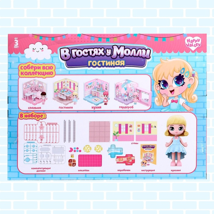 Пластиковый домик для кукол «В гостях у Молли» гостиная с куклой и аксессуарами
