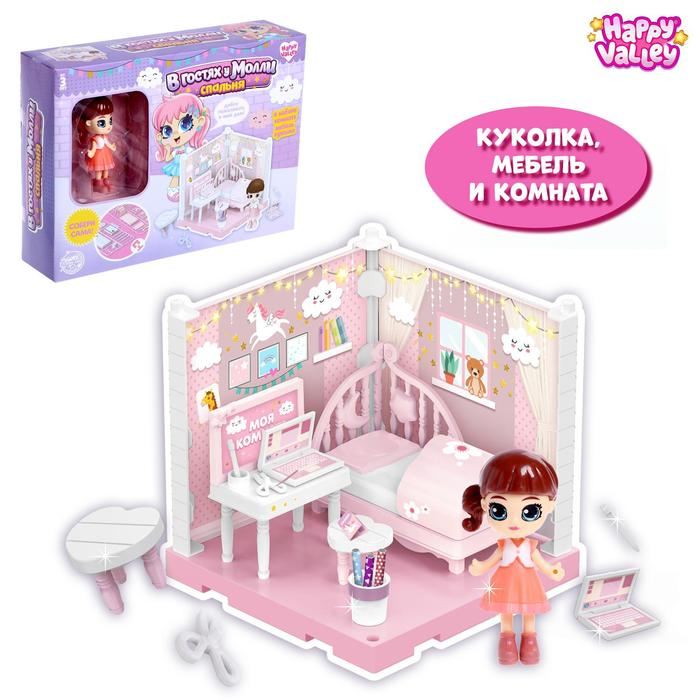 Пластиковый домик для кукол «В гостях у Молли» спальня с куклой и аксессуарами