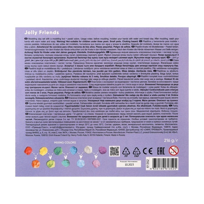 Палитра содержит нежные пастельные цвета, которые отлично смешиваются между собой и пластилином из классической серии, создавая новые оттенки. Удлиненная форма бруска позволяет легко отделить необходимое количество пластилина для работы. Каждый брусок имеет индивидуальную упаковку «flow-pack», которая надежно сохраняет товарный вид и пластичные свойства продукта. Пластилин упакован в картонную коробку без коррекса. В комплекте для декорирования и моделирования прилагается стек.