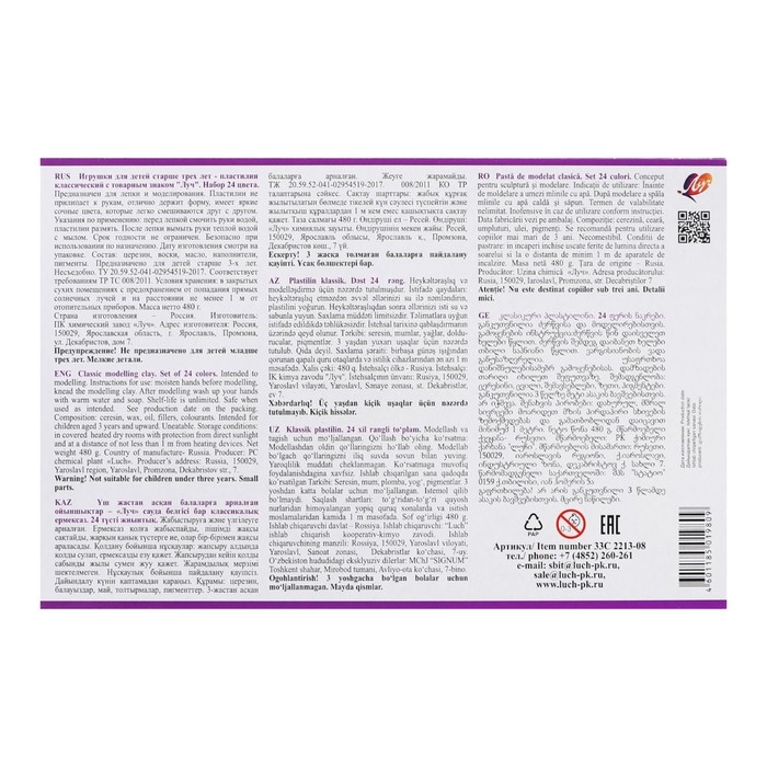 Пластилин 24цв 480г Луч "Аниме" (сиреневый)