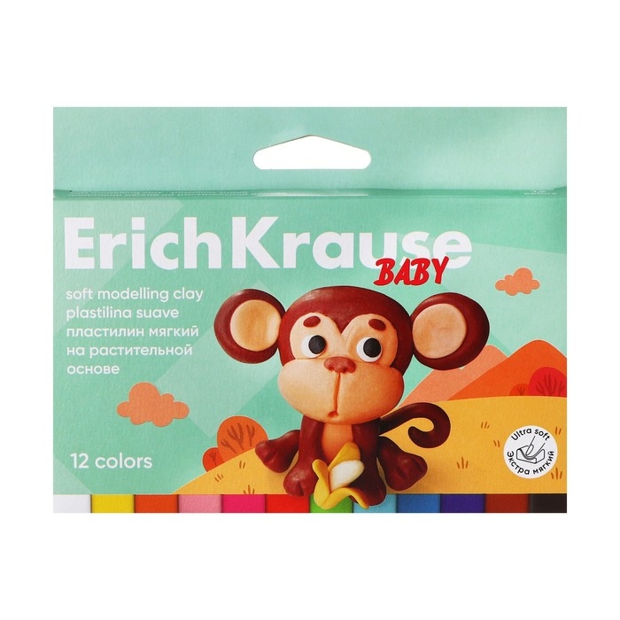 Пластилин мягкий 12 цветов, 180 г, ErichKrause "Baby", на растительно основе, с Алоэ Вера , европодвес