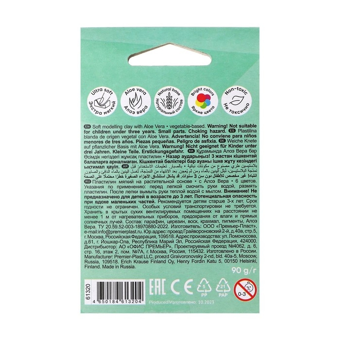 Мягкий пластилин на растительной основе ErichKrause с Алоэ Вера изготовлен на восковой основе, с добавлением натурального кукурузного крахмала, имеет мягкую консистенцию и особую пластичность, создан специально для дошкольников. Вазелиновое масло, которое широко используется в детской косметологии и экстракт Алоэ Вера во время лепки заботятся о комфорте детских рук.
