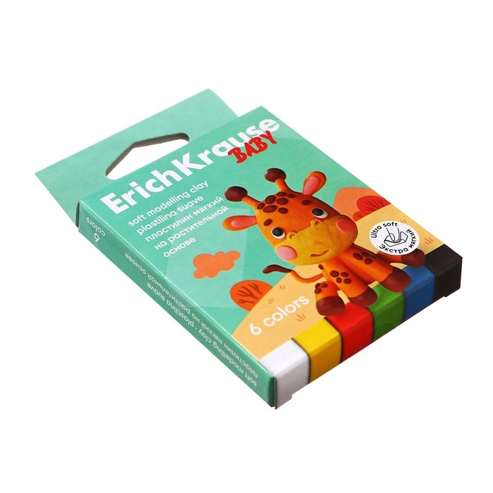 Пластилин мягкий 6 цветов, 90 г, ErichKrause "Baby", на растительно основе, с Алоэ Вера , европодвес