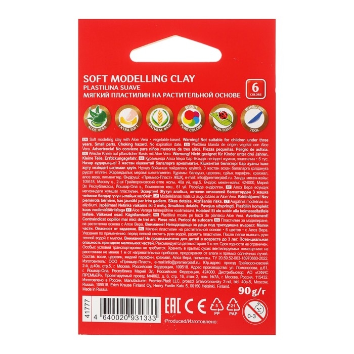 Мягкий пластилин ArtBerry®с Алоэ Вера изготовлен на восковой основе, с добавлением натурального кукурузного крахмала, имеет мягкую консистенцию и особую пластичность, создан специально для дошкольников.