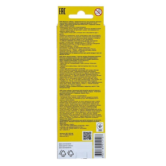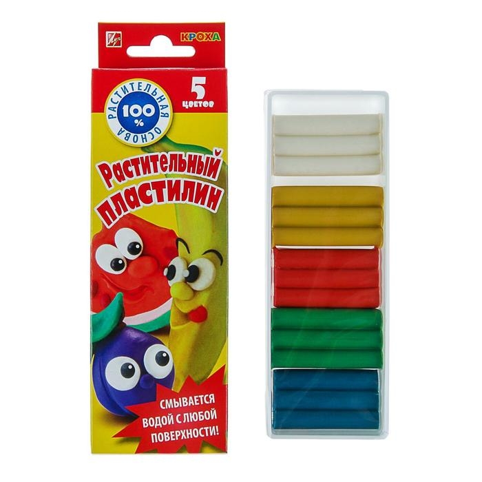 Пластилин на растительной основе, 5 цветов 80 г "Кроха"
