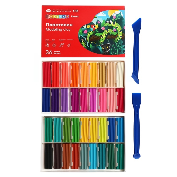 Пластилин ЗХК "Цветик", 36 цветов, 540 г, со стеком