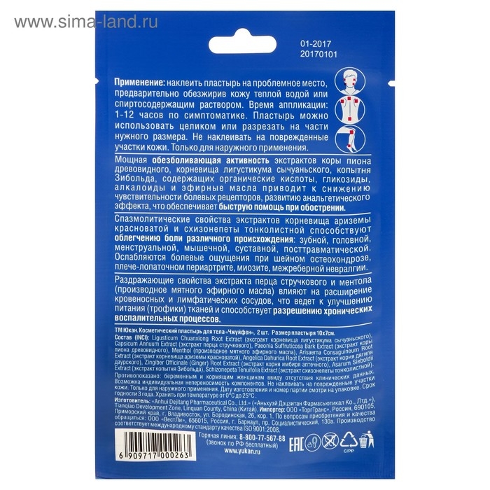 Пластырь "Юкан - Чжуйфен", обезболивающий, тканевый, для головы и шеи, 2 шт
