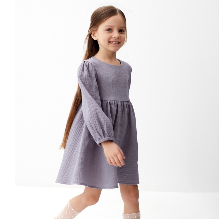 Платье детское с дл. рукавом KAFTAN "Муслин", р.34 (122-128 см), серый