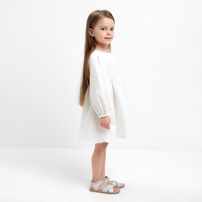 Платье детское с длинным рукавом KAFTAN "Муслин", размер 32 (110-116 см) цвет белый