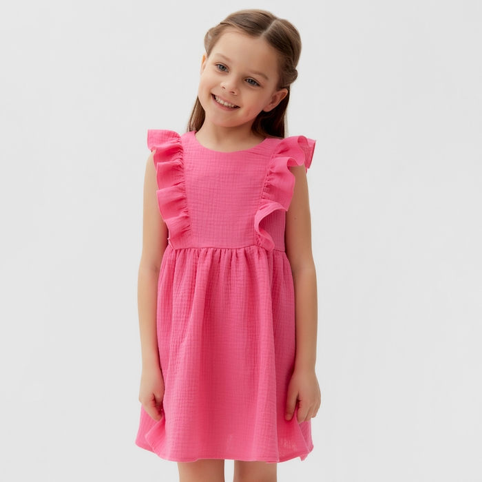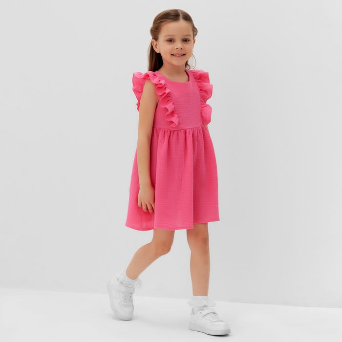 Платье детское с рюшей KAFTAN "Муслин", р.28 (86-92 см), ярко-розовый