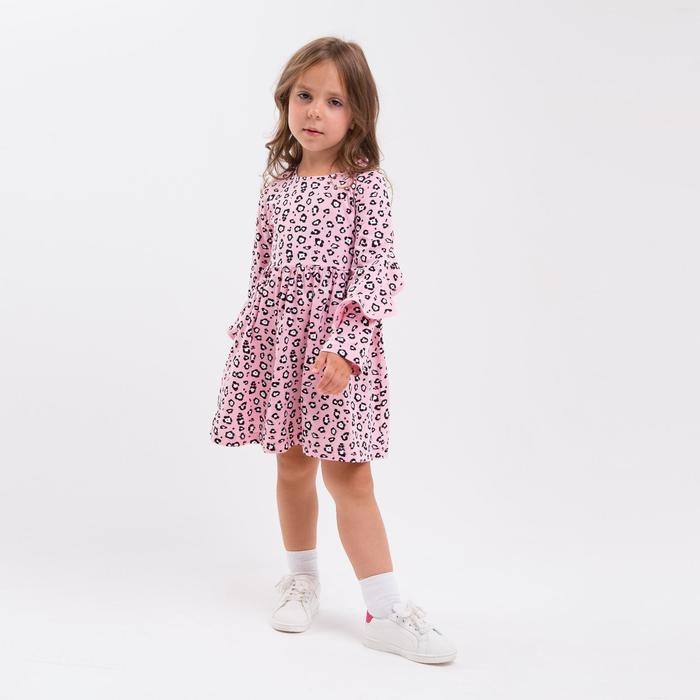 Платье для девочки, цвет розовый/леопард, рост 98 см