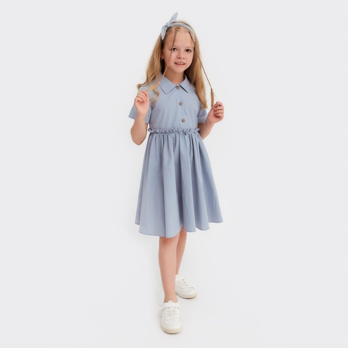 Платье для девочки с воротником KAFTAN, размер 32 (110-116), цвет серо-голубой