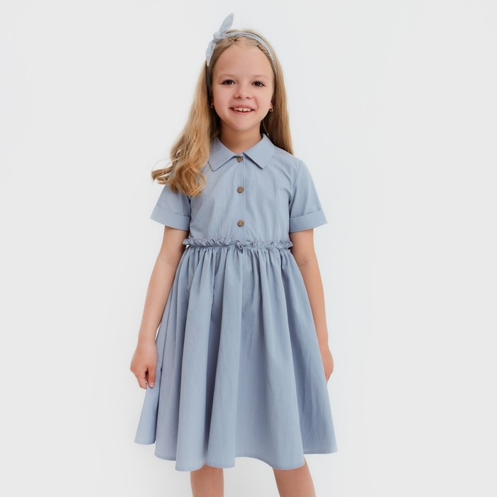 Платье для девочки с воротником KAFTAN, размер 34 (122-128), цвет серо-голубой
