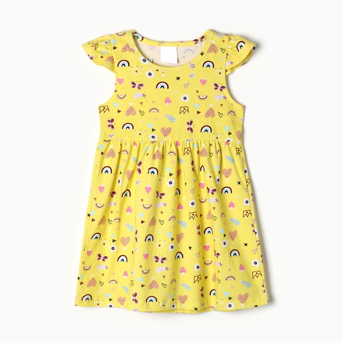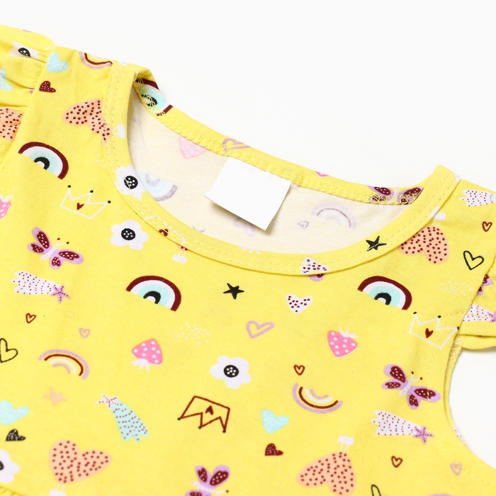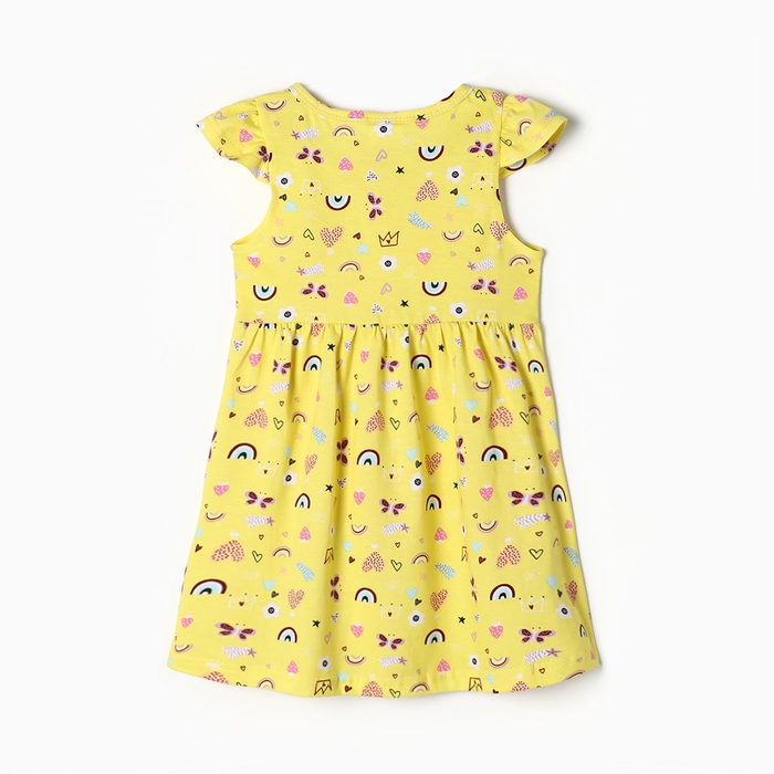 Платье для девочки "Сердечки, бабочки, короны", цвет жёлтый, рост 104-110