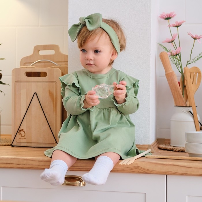 Платье и повязка Крошка, Я BASIC LINE, рост 68-74 см, зелёный