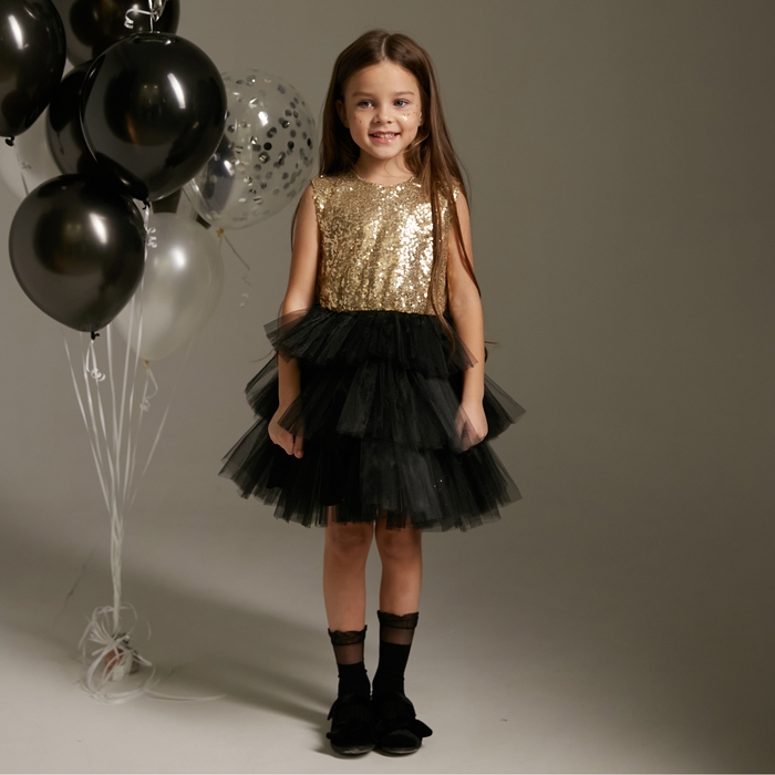 Платье нарядное для девочки с пайетками KAFTAN, размер 30 (98-104), цвет чёрный