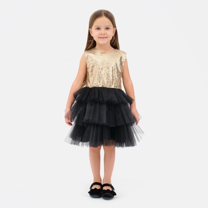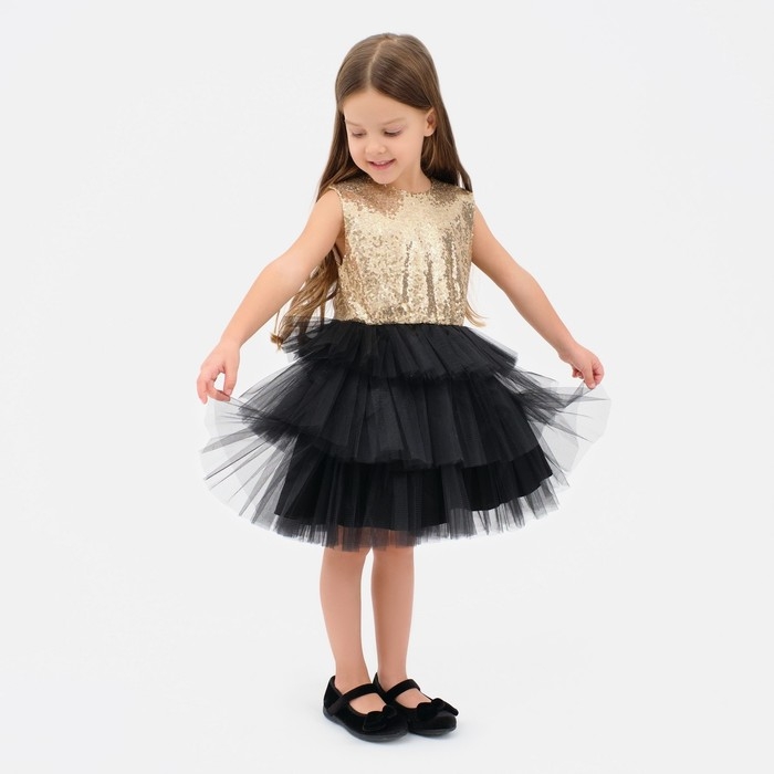 Платье нарядное для девочки с пайетками KAFTAN, размер 32 (110-116), цвет чёрный