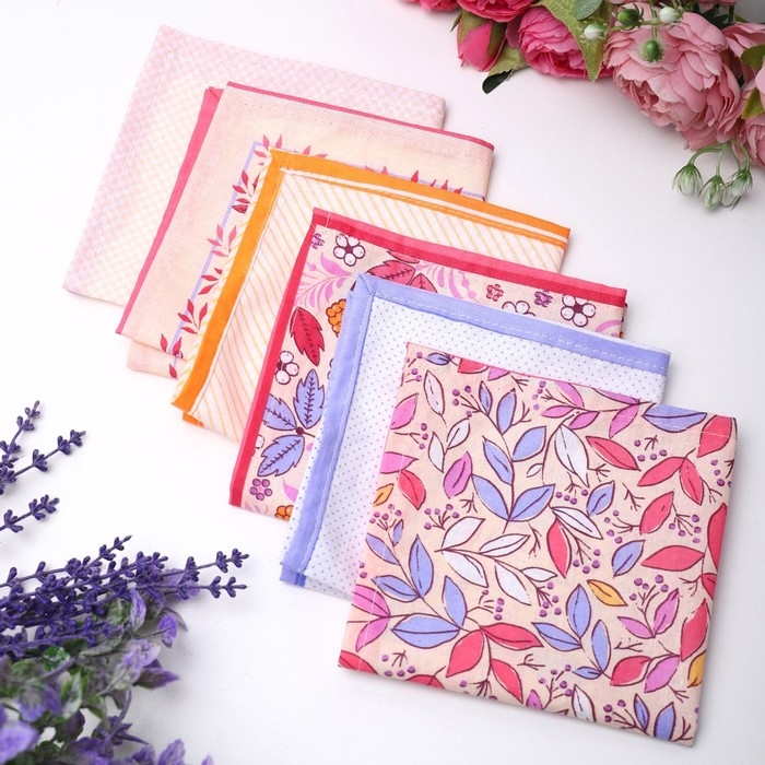 Платок носовой женский 28х28см, 6шт, рис 21283-3, МИКС, ситец 100г/м, хл100%