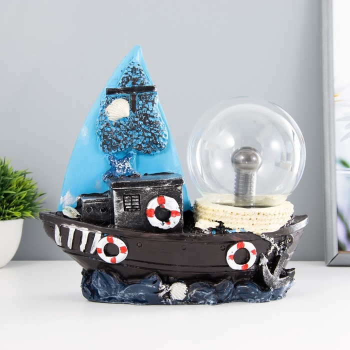 Плазменный шар "Парусник" синий 25х10х22 см RISALUX