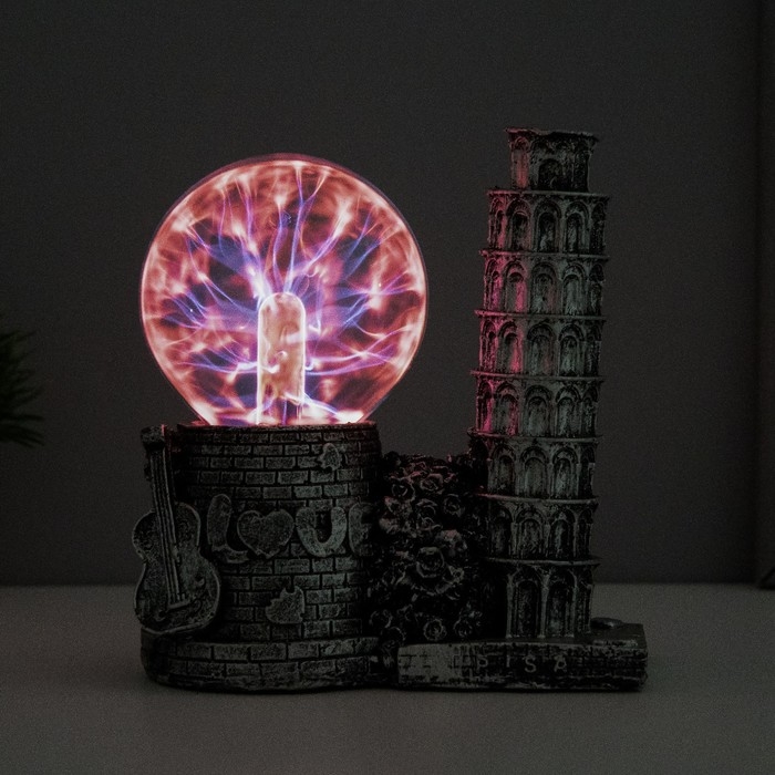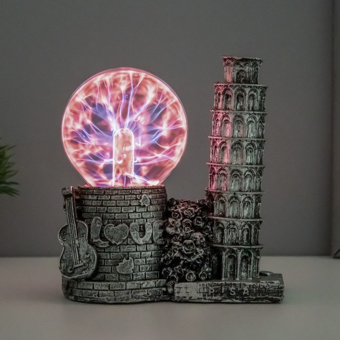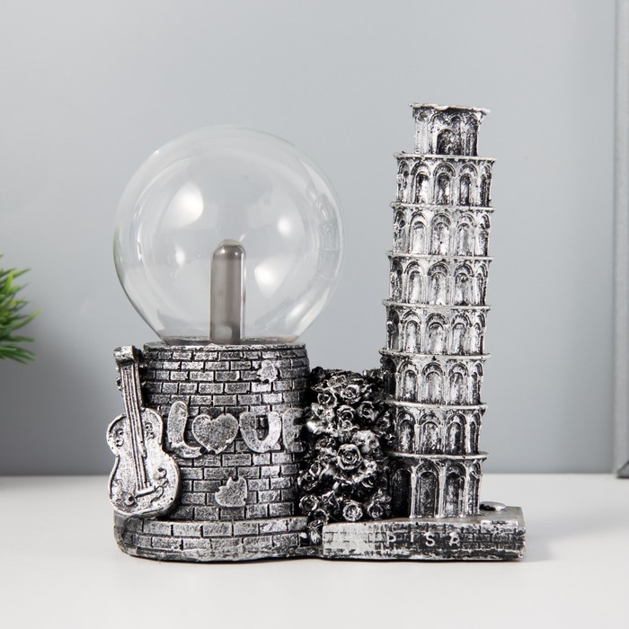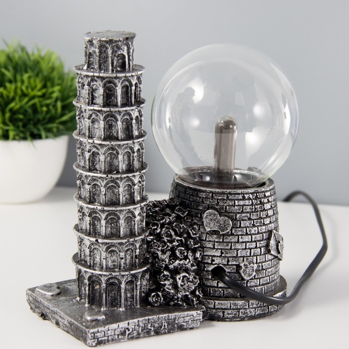 Плазменный шар "Пизанская башня" серый 14х10х16 см RISALUX