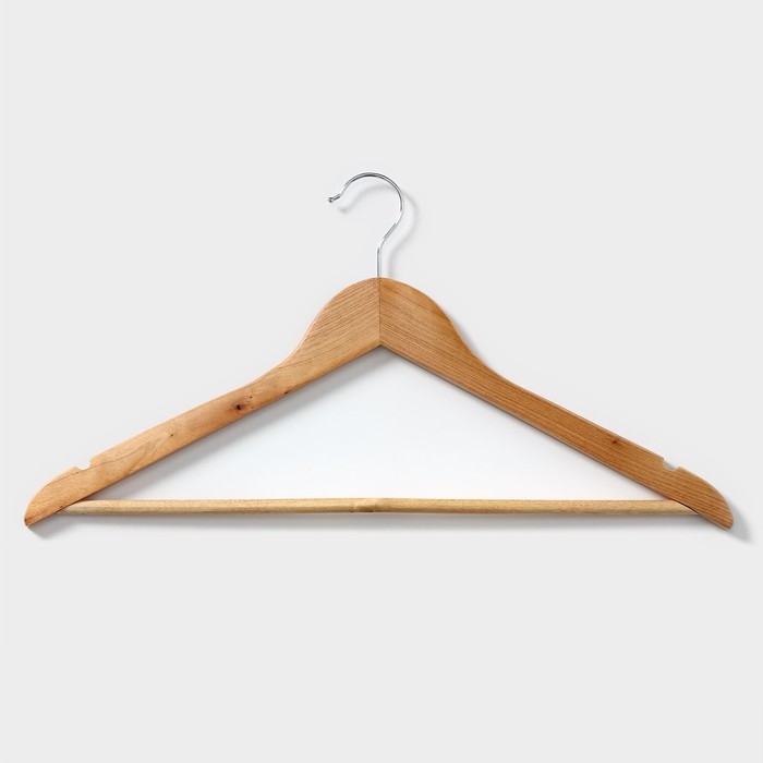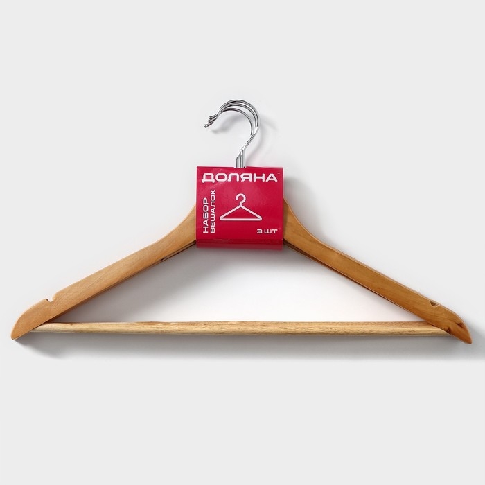 Плечики - вешалки для одежды Доляна, 44,5×23 см, 3 шт, с перекладиной, широкие плечики, деревянные сорт B