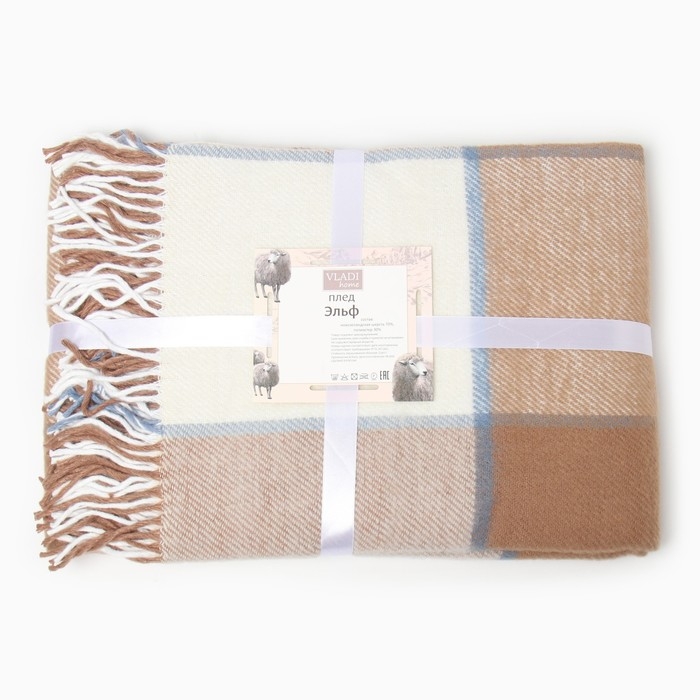 Плед Эльф 140х200 см, 04/OLIVER, бел/беж/сер.гол, новозеландская шерсть 70%, пэ 30%