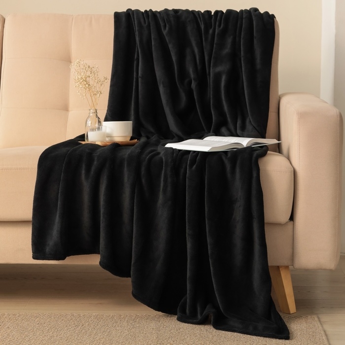 Плед Этель цв.черный 150*200 см,100% п/э, корал-флис 220 гр/м2