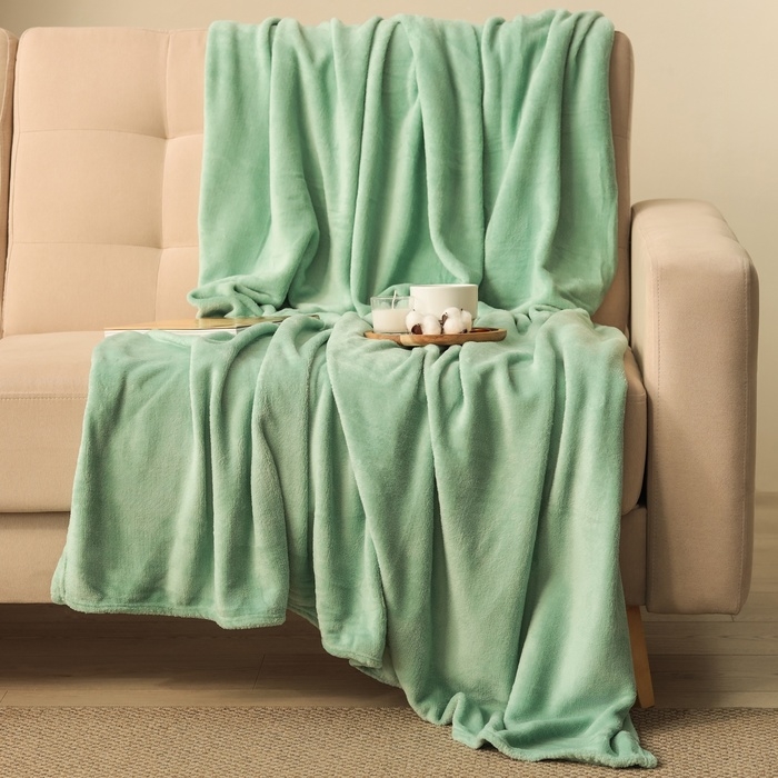 Плед Этель цв.мятный 200*220 см,100% п/э, корал-флис 220 гр/м2