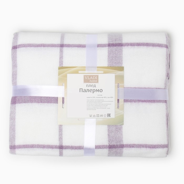 Плед Palermo 140х200см, 15S/SOUL, цв.слив/бел/слив, шерсть 20%, пан40%, пэ40%