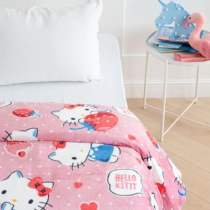 Плед Павлинка Hello Kitty Клубнички 100х150см, аэрософт 190г/м, пэ100%