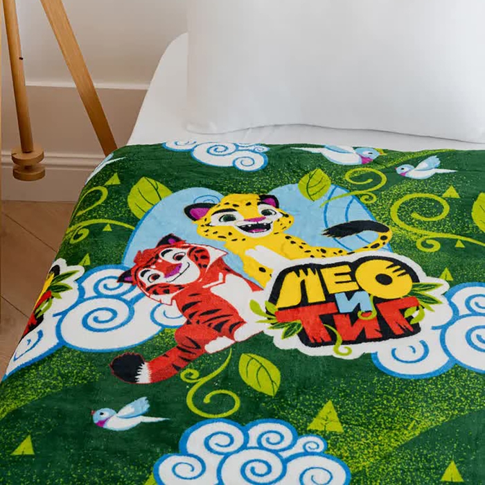 Плед Павлинка Лео и Тиг 100х150см, зеленый, аэрософт 190г/м, пэ100%