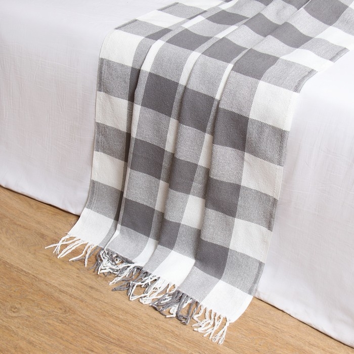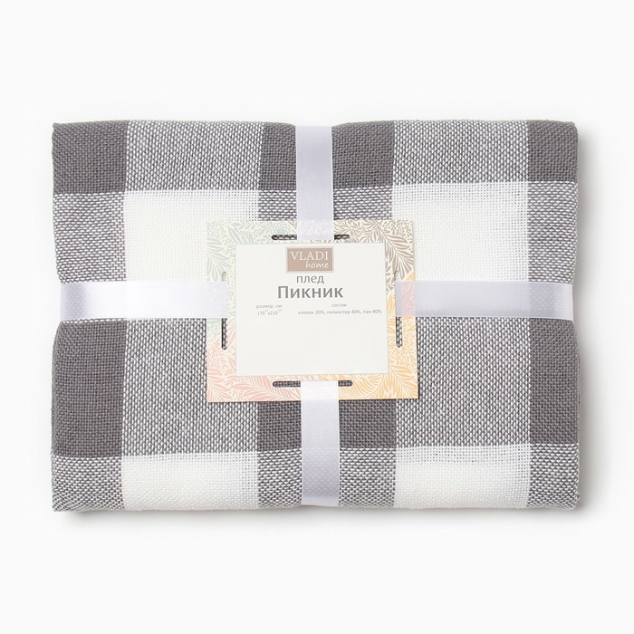 Плед Пикник 140х200см, бел/сер рап.8, хл 20%, пан 40%, пэ 40%