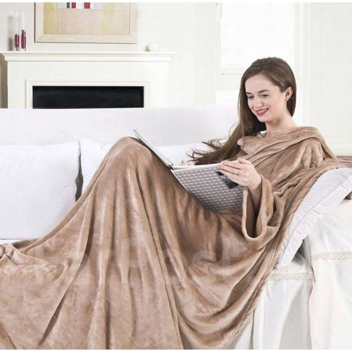 Плед с рукавами, цвет бежевый, 150х200 см, рукав — 27х52 см, аэрософт