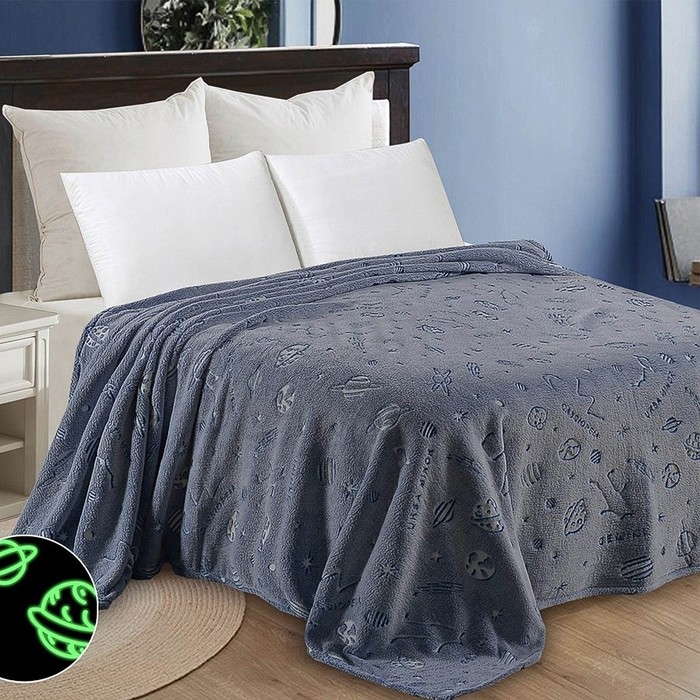 Плед светящийся 150х200 см «Планета», велсофт 260г/м