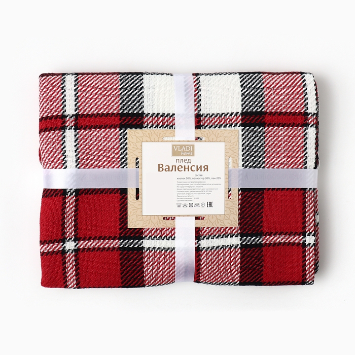 Плед Валенсия 140х200см, 03/BABBLE, бел/крас/антр, хл 50%, пэ 30%, пан 20%