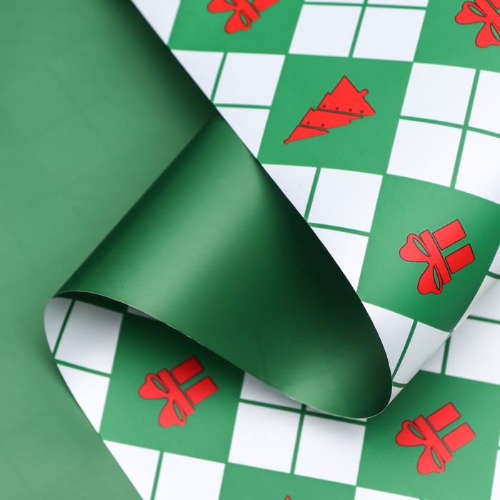 Пленка для цветов, "Новогодний калейдоскоп", зелёная 56см*10м