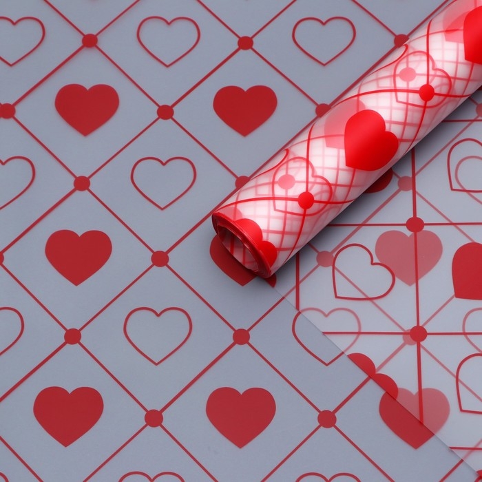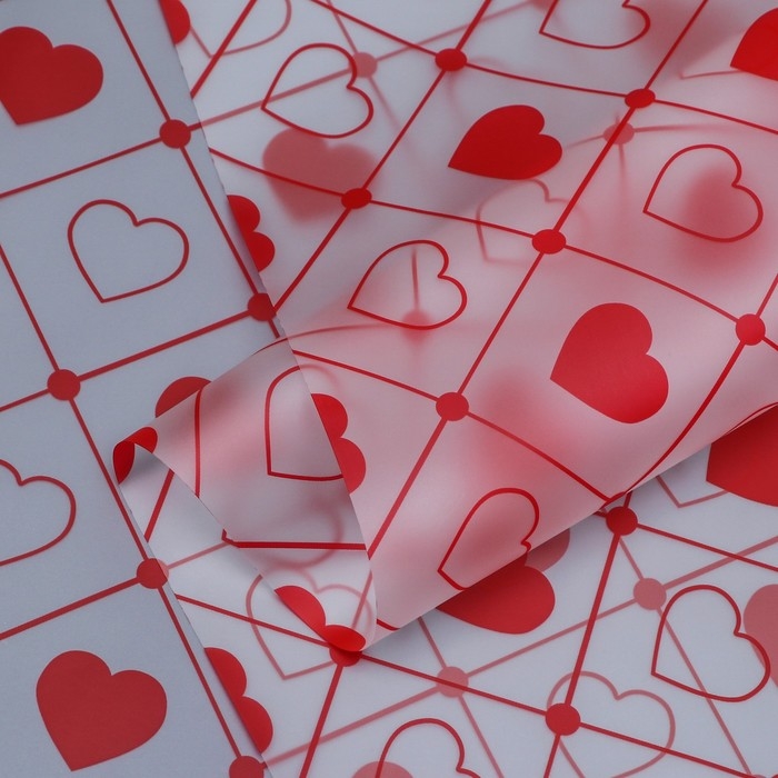 Пленка матовая прозрачная "Сердца", 58 см x 10 м, красный