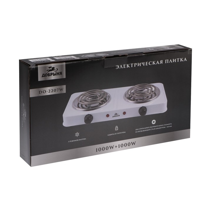 Плитка электрическая "Добрыня" DO-2207, 2000 Вт, 2 конфорки, коричневая