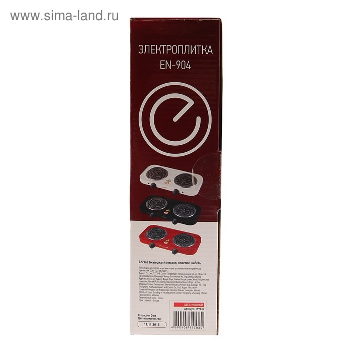 Плитка электрическая ENERGY EN-904R, 2000 Вт, 2 конфорки, красная