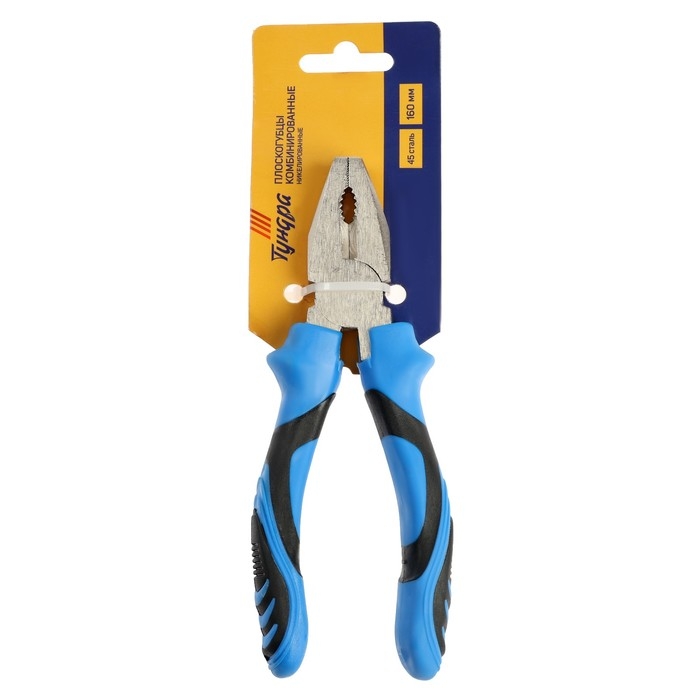 Плоскогубцы комбинированные ТУНДРА, сталь 45, никелированные, 2К рукоятки, 160 мм