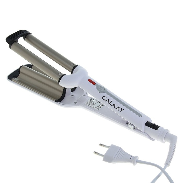 Компактная и удобная плойка Galaxy подарит возможность воплотить в жизнь самые смелые фантазии об эффектной причёске. С её помощью легко создать объёмные зигзагообразные локоны, которые порадуют вас и окружающих своей оригинальной формой и красотой. Керамическое покрытие пластин уберегает волосы от пересушивания и позволяет использовать данную модель на всех типах волос. Нагревательный элемент с защитой от перегрева делает устройство безопасным в эксплуатации.