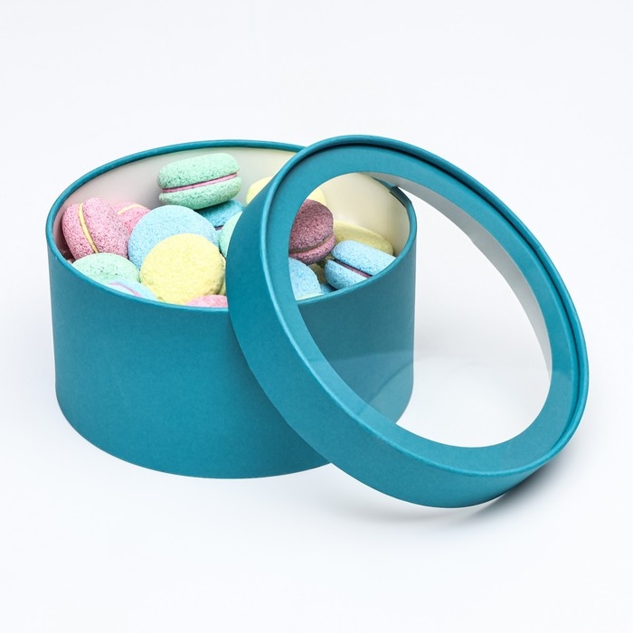 Подарочная коробка "Frilly" сине-травяной, завальцованная с окном, 21 х 11 см