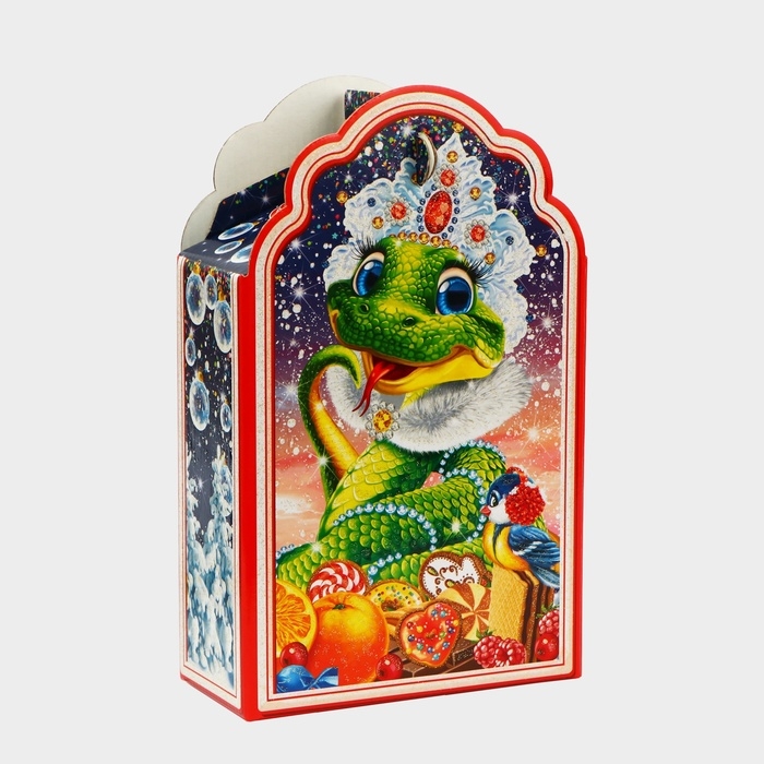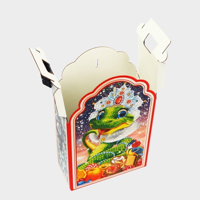 Коробка выполнена из качественных материалов, которые обеспечивают сохранность содержимого. Она имеет яркий и красочный дизайн, который отражает атмосферу Нового года.