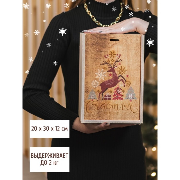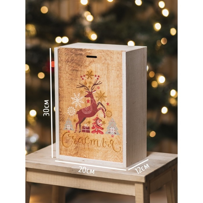 Подарочная коробка - ящик новогодний «Счастья и любви в Новом Году», деревянный 20 × 30 × 12 см