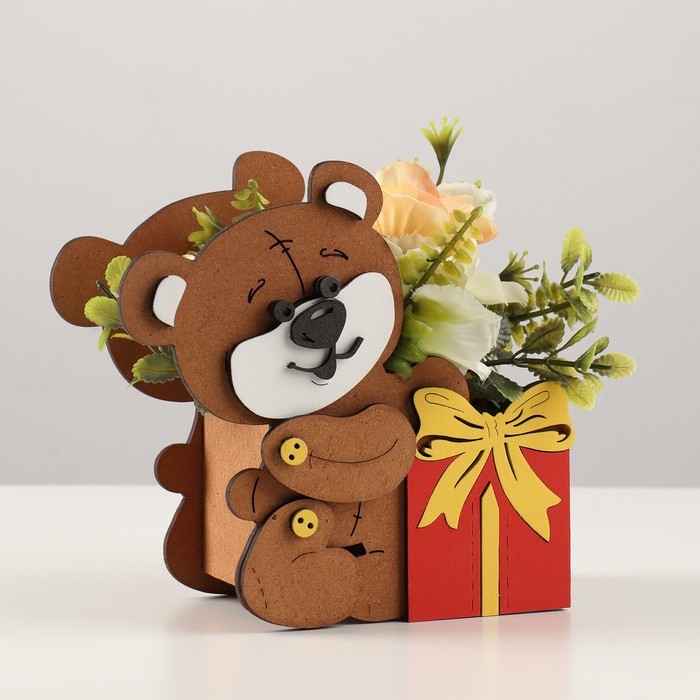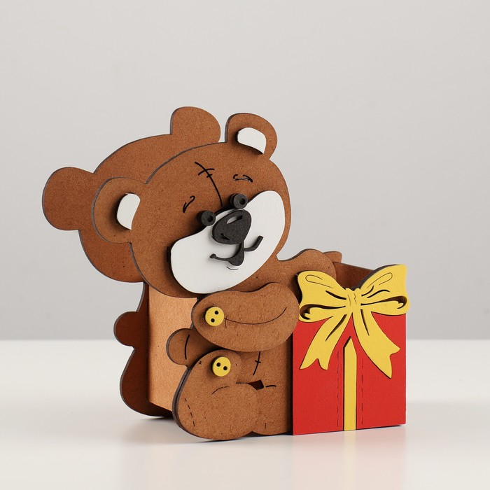 Подарочная упаковка "Мишка с подарком" 17х8х16 см, Дуб-красный