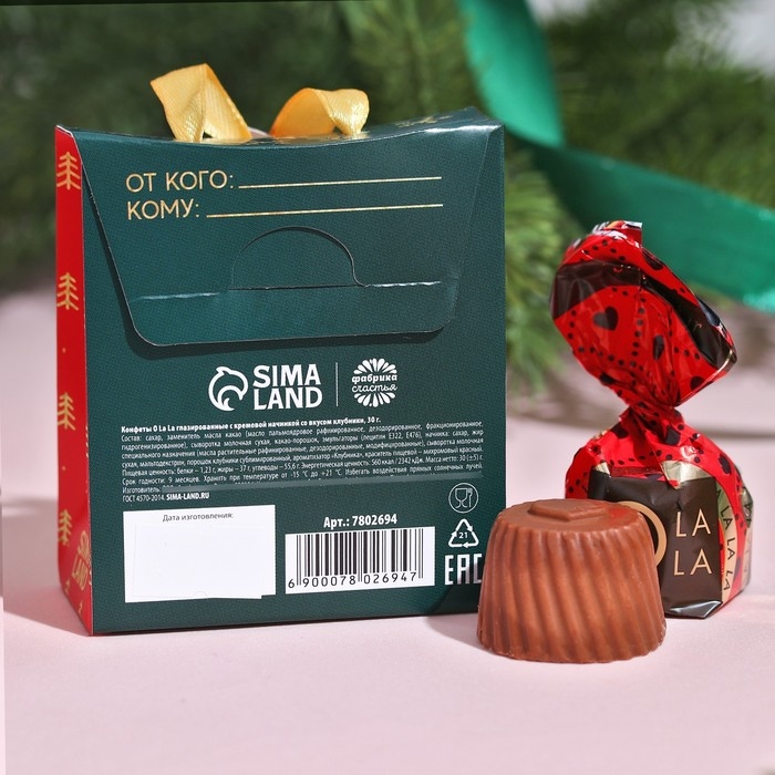 Подарочные конфеты «С новым годом!», с кусочками клубники, 30 г